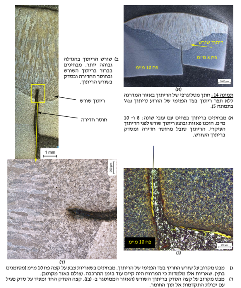 במילים פשוטות: הרדיוגרפיה אמרה “יש חוסר חדירה”; הטכניון חתך והראה “אכן יש חוסר חדירה”. זהו מצב שבו שתי שיטות בלתי תלויות מגיעות לאותה מסקנה – וקשה עד בלתי אפשרי להמשיך לטעון “אין אינדיקציה לכשלי ייצור”.